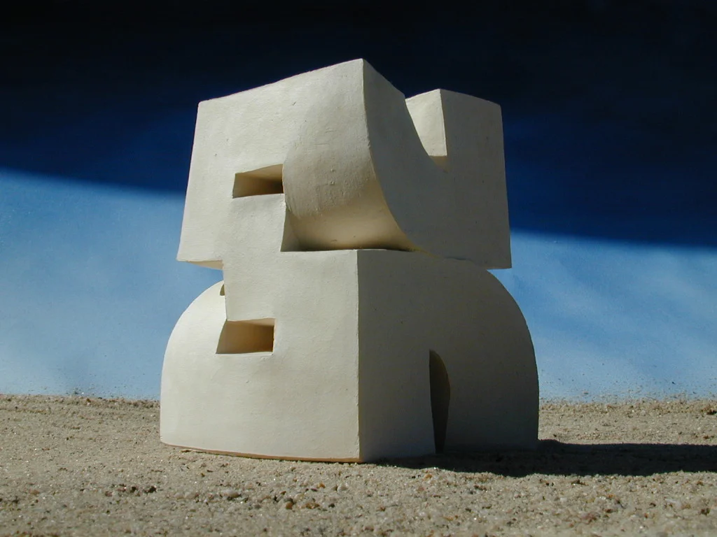 The form is of utmost importance. The artist recollects the Egyptian hierarchical language of volume and surfaces while attempting to achieve total objectivity. What at first glance appears to be a cube or arch, is revealed as a complexly built, yet simply structured mass. Though each work has heavy, severe characteristics, none can be even remotely compared to any sort of cult object. The desire to see and touch the sculptures is aroused and demanded. Each work contains a unique sensual quality, which emanates from the smooth, inorganic, architectural form; and its artistic corporeality, through touching, provides more than a simple complimentary hand object.